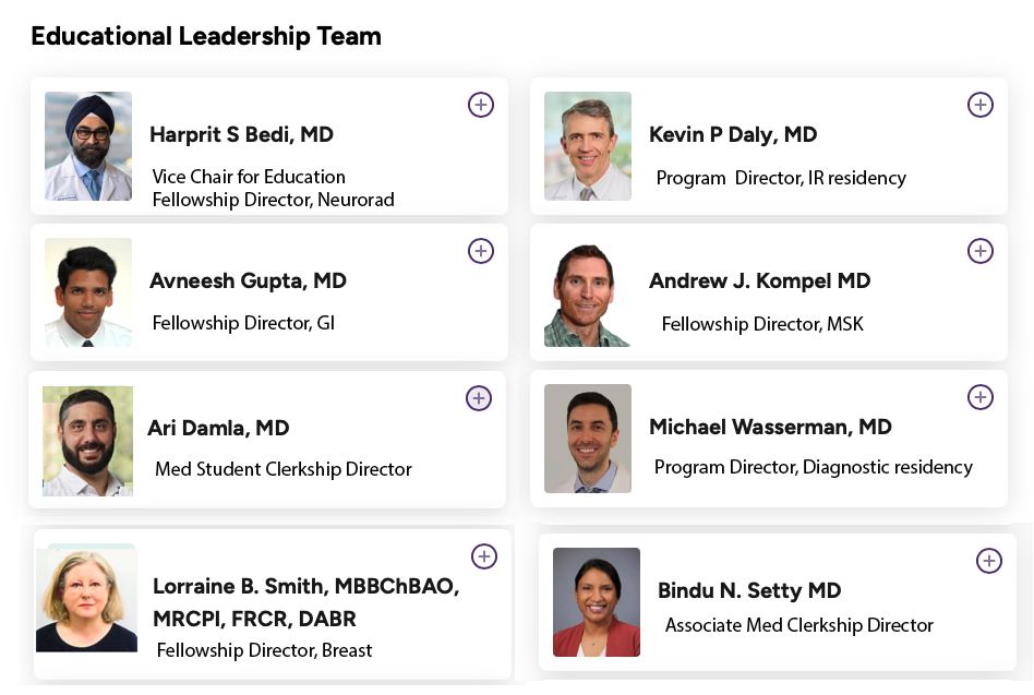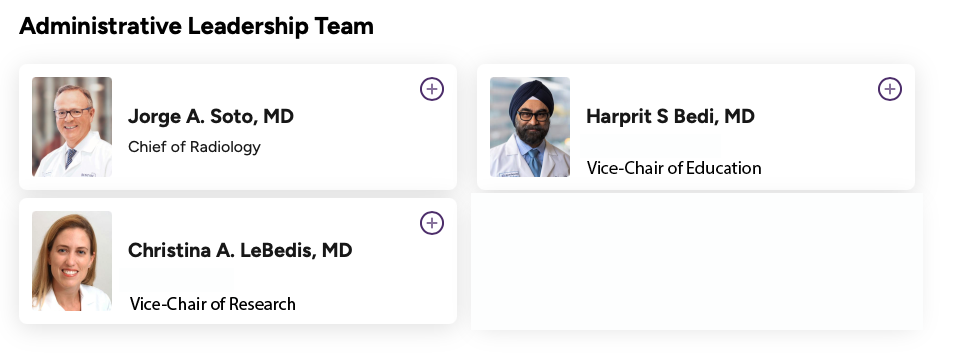 The links listed will show you the administrative organization and educational leaders in Radiology at BMC. There is also a diagram of the Radiology Reading Room in the Dowling Building, with phone extensions for each area. Breast Imaging is located in the Moakley Building. Musculoskeletal Imaging is in the basement of the Shapiro Building. The Interventional Radiology Clinic is also located in the Shapiro Building.